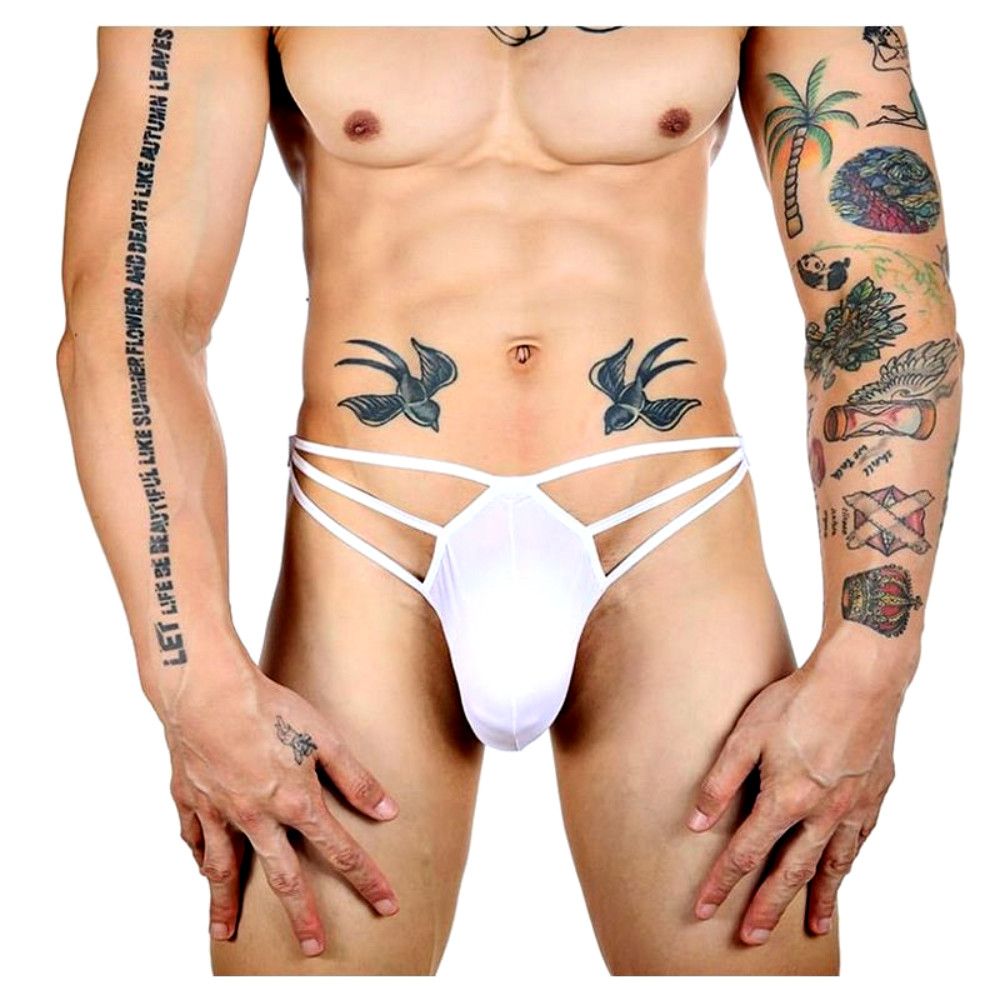 Белые сексуальные трусы-стринги на тонких бретелях.